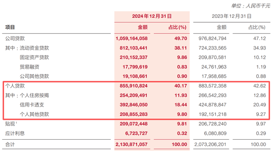 总体来看,广发银行零售业务正在不断收缩。截至2024年末,广发银行个人贷款余额8,559.11亿元,较上年末减少276.62亿元,同比下降3.13%。2024年,广发银行实现营业收入692.37亿元,其中个人银行业务营收占比已低于50%。