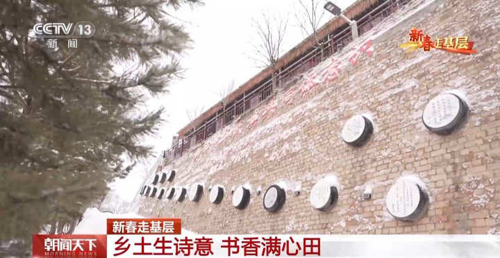马骏希望在书院能把文学的力量传递下去。记者看到,木兰书院的每一处都留存着农民作家们落笔的温度与心血。史静波把作品印在了墙上、草丛间,甚至是两块钱一个的旧轮胎上,把木兰书院本身变成了一本诗集。
